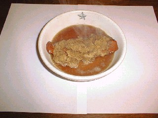 ![]() 魚をあげたあと、その残りの汁に大根おろしを入れ、 ざっと大根おろしが温まる程度に煮上げます。 |