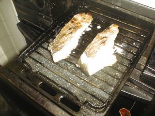 ![]() 魚は一人ずつの切り身とし、白焼きにしておきます。(生の まま煮ても結構ですが、煮る前に焼いておくと、身が締まり、 魚の臭みがとれ上、香味もよくなります) |