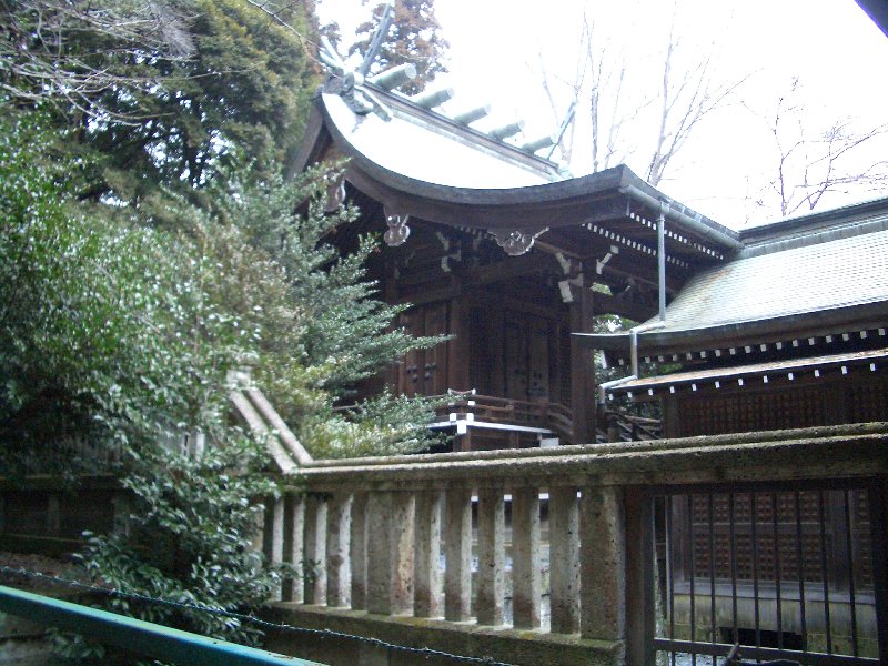 ご本殿は、ご祭神のご神霊を宿したご神体をお祭り申し上げている社殿です。神社で最も大切な場所です。流造(ながれづくり)と呼ばれる建築様式にて建てられております。屋根には千木と鰹木が据えられ、鰹木の側面には当神社の神紋の桜紋が刻まれております。拝殿は、参拝のための社殿です。神社にお越しの際はどうぞこちらでご参拝ください(⇒参拝の作法)。拝殿は、特徴的な「翼廊」を備えた様式となっております。世界遺産の平等院鳳凰堂と同じように拝殿の左右に翼を広げるように回廊が広がっています。この回廊を翼廊と呼びます。護国神社に多く用いられることから、この翼廊を備えた社殿構成を「護国神社様式」と呼びます(護国神社以外では、足利市の織姫神社でも用いられております)。